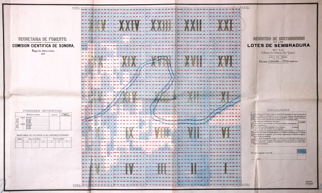 Las funciones de la CCS que muestra el plano en este caso en particular fue encargarse de realizar los deslindes, trazos de pueblos, ejidos y la repartición de terrenos en los valles de los ríos Yaqui y Mayo. Para el trabajo concerniente a deslindes y levantamientos topográficos se estableció una red de paralelos y meridianos denominada Canevá, formada a partir de puntos del terreno ubicados geográficamente por procedimientos astronómicos o topográficos; estos puntos se ligaron entre sí, en todos los sentidos posibles, mediante triangulaciones que sirvieron para situar los rasgos naturales y culturales existentes en el área. En tal sentido, para el trazo de los cuadrantes vistos en el plano se utilizaban pequeñas estructuras de concreto llamadas comúnmente mojoneras, las cuales son puntos de referencia que tienen base en el sistema descrito.