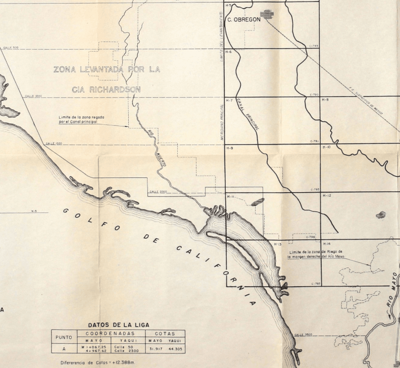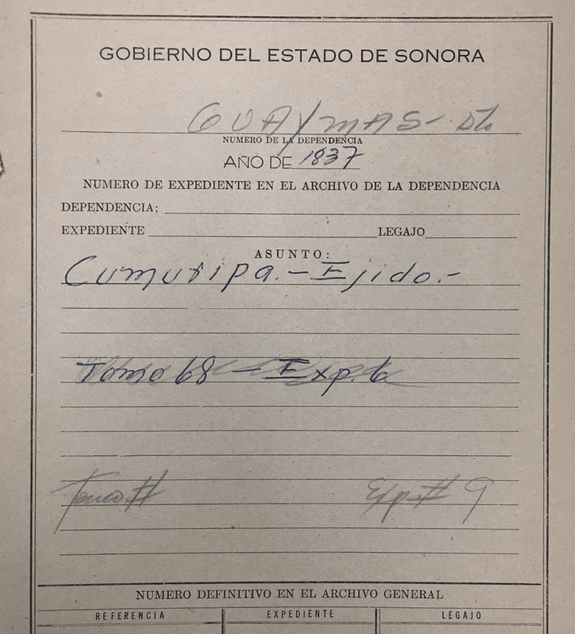 En el mapa que aquí se presenta aparece por primera vez, en un documento cartográfico con referencias territoriales claras, la Labor de Cumuripa, es decir, la tierra de la comunidad con sus límites tal como fueron establecidos en 1837. Aparece también el terreno de El Apache, incorporado al ejido posteriormente.