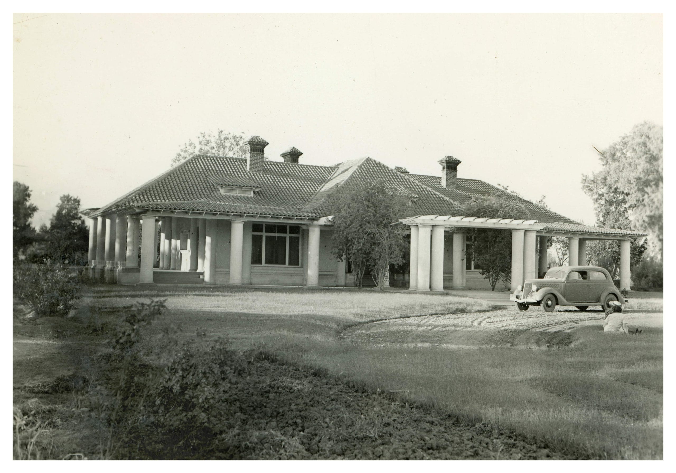 La fotografía muestra una residencia de lujo en Cajeme. La casa se caracteriza por su diseño de estilo colonial o neoclásico adaptado al clima, con una amplia terraza o porche perimetral sostenido por numerosas columnas blancas y un techo de tejas. Un patio delantero grande y bien cuidado, con césped y arbustos podados, añade un aire de exclusividad.