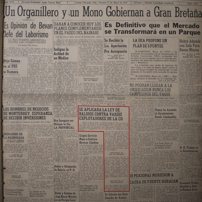 En 1912 la compañía Ferrocarril Sud Pacífico de México inicio un juicio de expropiación para adquirir el terreno que ocupa la vía férrea en el rancho "El Apache", ubicado en Cumuripa, Sonora.
