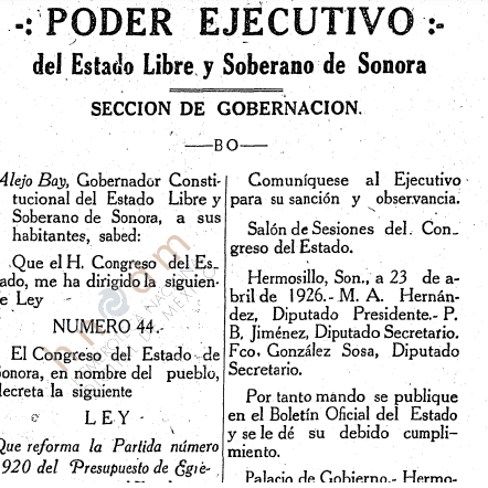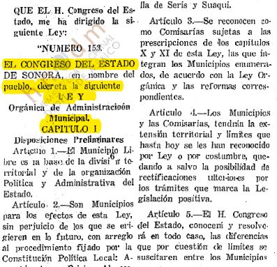 Sonora. Ley número 103 que suprime la Comisaría de policía de Cumuripa, Municipio de Cajeme y crea la Delegación de policía del mismo nombre