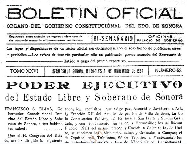 Sonora. [Resolución sobre la restitución de tierras en Cumuripa, Municipio de Cajeme, Sonora]