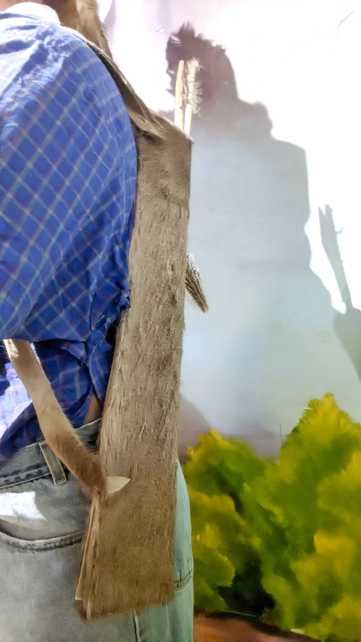 Cuchillo, mango o manita de chapayeca elaborado en madera de álamo o vara de algún otro árbol de madera ligera. La hoja está cubierta con esmalte blanco y tiene una figura geométrica de color verde al centro, con la punta de color rojo y el mango de color natural. Existen dos "versiones" de este tipo de cuchillos: las pertenecientes a los cabos (niños, jóvenes o personas solteras, ornamentados con imágenes de sewa (flores). El otro tipo es la mostrada en la imagen, la cual pertenece a un chapayeca principal, quien para serlo requiere estar casado por la iglesia, y la decoración del cuchillo es con imágenes de triángulos; las flores que representan inocencia pasan a estar en la máscara.