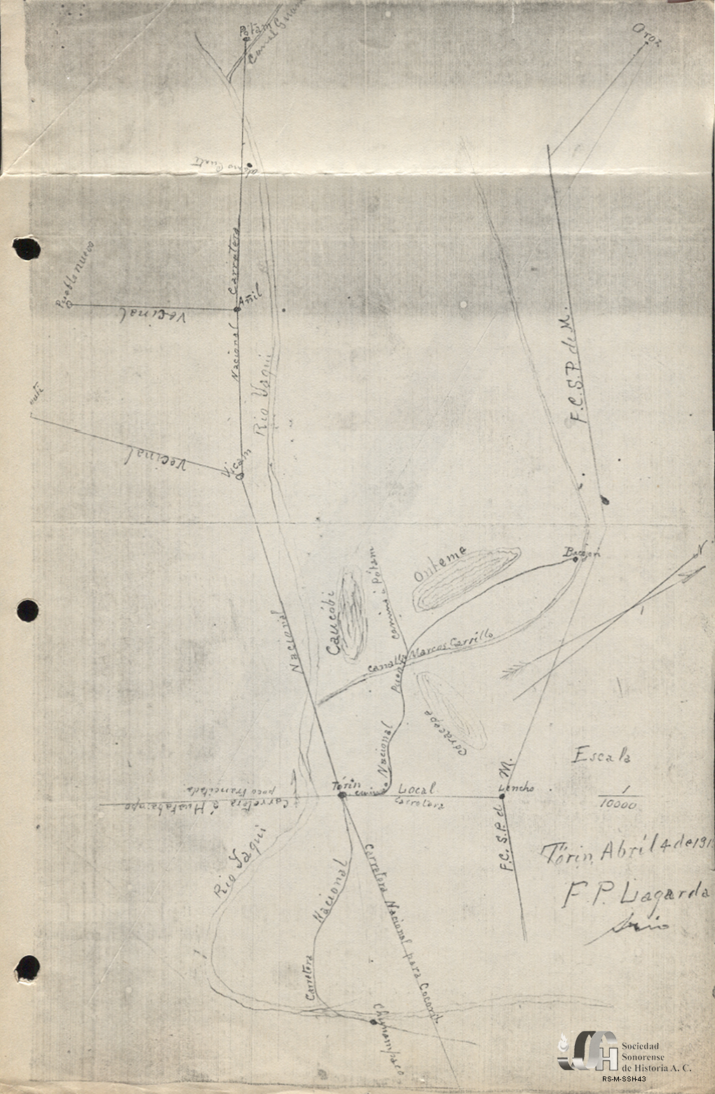 Croquis de la Carretera Nacional para Cócorit