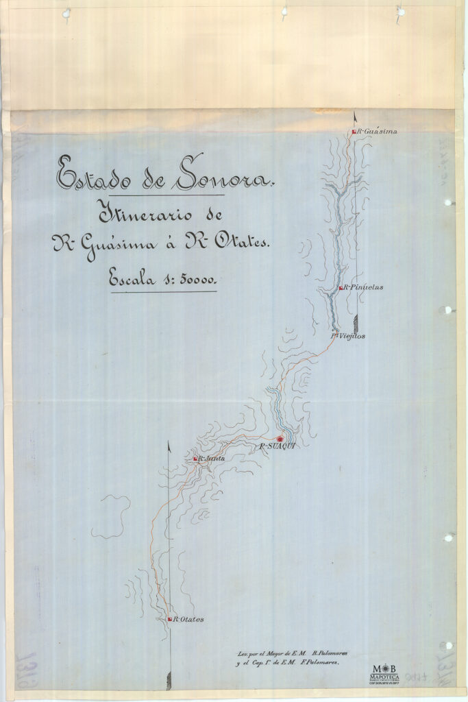 El croquis lo realizaron ingenieros militares de la Comisión Científica de Sonora (CCS), destacamento operativo de la Comisión Geográfico Exploradora (CGE) encargado de apoyar a la Secretaría de Guerra y Fomento en la pacificación, deslinde y colonización de los valles de los ríos Yaqui y Mayo en Sonora. Una de las funciones de la CCS era recopilar datos de la configuración del terreno estatal, para posteriormente utilizar esa información con la suficiente claridad para influir en los proyectos de operaciones de guerra, pacificación y administración del territorio. Entre la documentación resultado de lo anterior resultó la elaboración de los itinerarios, realizados por el personal militar, durante el desempeño de sus reconocimientos tácticos, también se encargaron de los levantamientos necesarios para la formación de las hojas cartográficas concernientes al territorio sonorense para incluirse en la Carta General de la República Mexicana a escala 1:100 000, magno proyecto por el cual el presidente Porfirio Díaz creó a la CGE; ésta institución trabajó en esta labor desde 1878 hasta 1914.