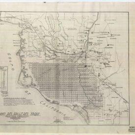 La lectura del presente plano elaborado en enero de 1943, tiene trasfondo en los trabajos realizados por la Comisión Científica de Sonora durante el porfiriato, las inversiones de compañías extranjeras cometidas en el área, la etapa de transición para la región sur del Estado posterior a las reformas cardenistas y la restitución de las tierras yaquis a los pueblos de la etnia. Sin embargo, desde el punto estructural, cabe destacar el impacto que dejó la Compañía Constructora Richardson (CCR), quien a partir de 1909 entró a la escena económica sonorense y logró poner en marcha de manera programada la ocupación de importantes extensiones del valle, situación que supuso un importante mecanismo de colonización.