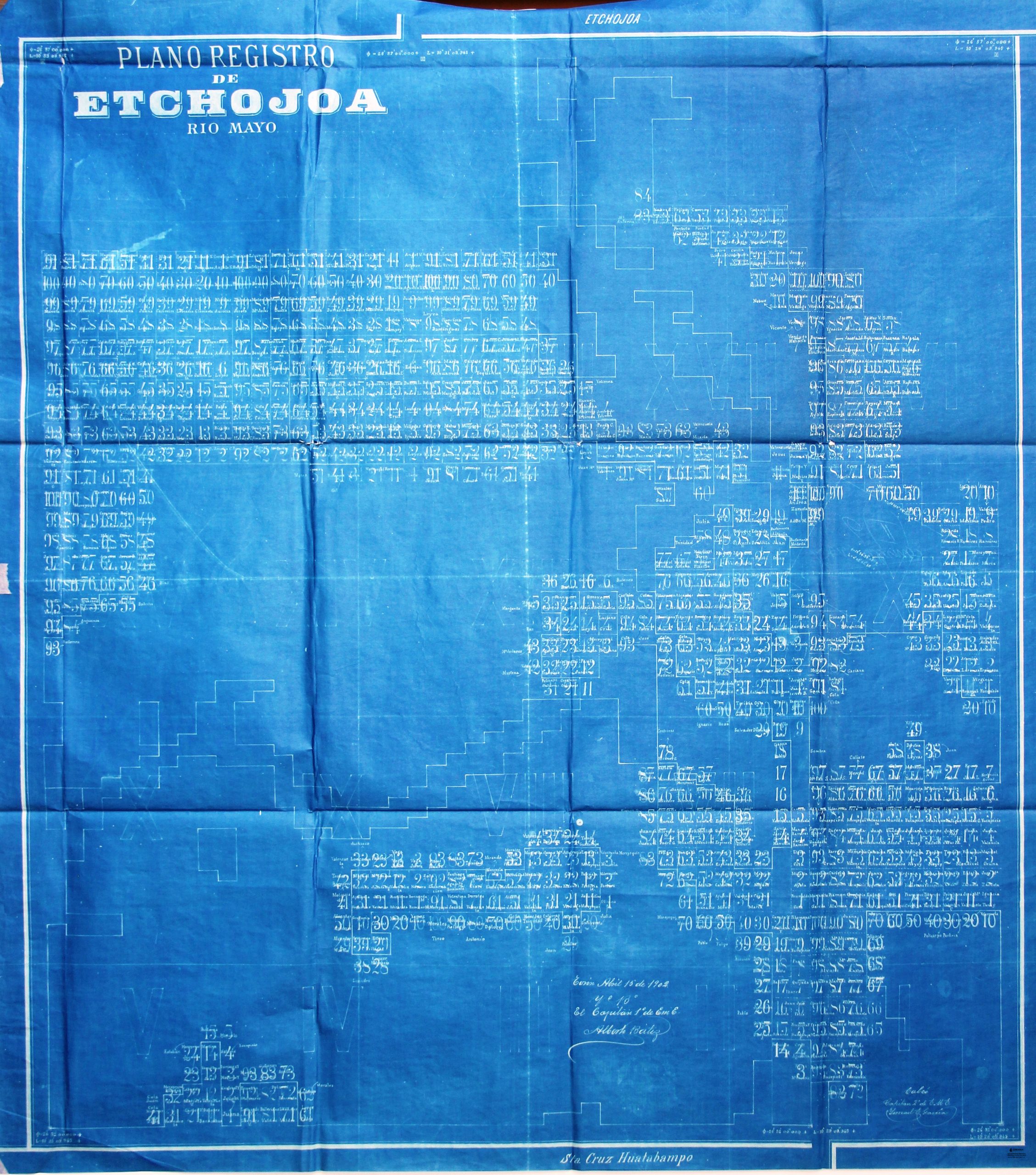 El presente plano se ubica en el contexto histórico de los trabajos realizados por la Comisión Científica de Sonora (CCS), destacamento operativo de la CGE. En la edición del periódico oficial La Constitución, publicado el 27 de octubre de 1892, se informó la relación de los beneficiados con lotes de sembradura y solares para habitación de las colonias de Santa Cruz de Huatabampo, Cohuirimpo, Etchojoa y San Pedro. En tal sentido, la adjudicación oficial de terrenos tenía el objetivo primordial de dar claridad fiscal a la administración pública, por lo que, los deslindes realizados en el valle del Mayo debían cumplir con las siguientes características: debían tener fundamento en puntos de referencia que permitieran localizar mediante coordenadas geográficas cada lugar (en la práctica serían las mojoneras), una vez realizado lo anterior, se debía trazar un cuadrilátero perfecto que delimitara el espacio territorial de cada pueblo, este cuadrilátero o Colonia agrícola fue dividido en veinticinco secciones identificadas mediante números romanos, y estas a su vez fraccionadas en lotes de dos clases, unos para la “sembradura” o suelo agrícola, y otros para ser utilizados como “solares” o suelo urbano. El presente plano integra información catastral de suelo agrícola. Son indicados el nombre de propietario y la ubicación del terreno mediante su respectivo número identificador correspondiente a cada sección.