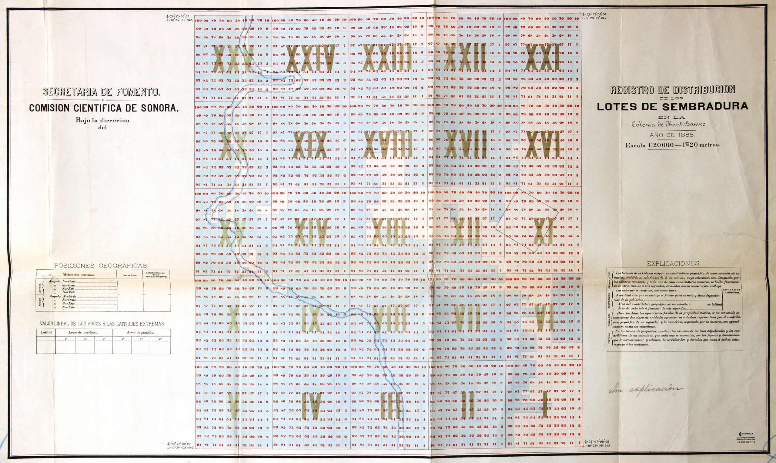 Registro de distribución de los lotes de sembradura en la Colonia de Huatabampo, bajo la dirección del Ingeniero Agustín Díaz. [1]